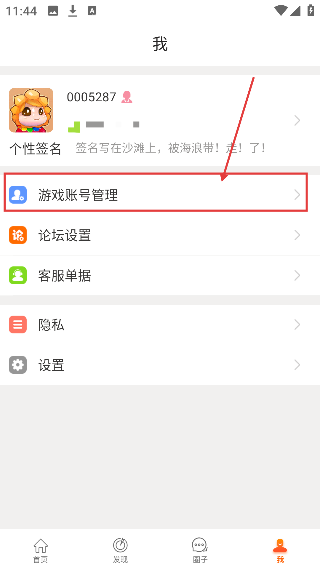 2、在个人界面点击【游戏账号管理】,进入账号列表界面啦。