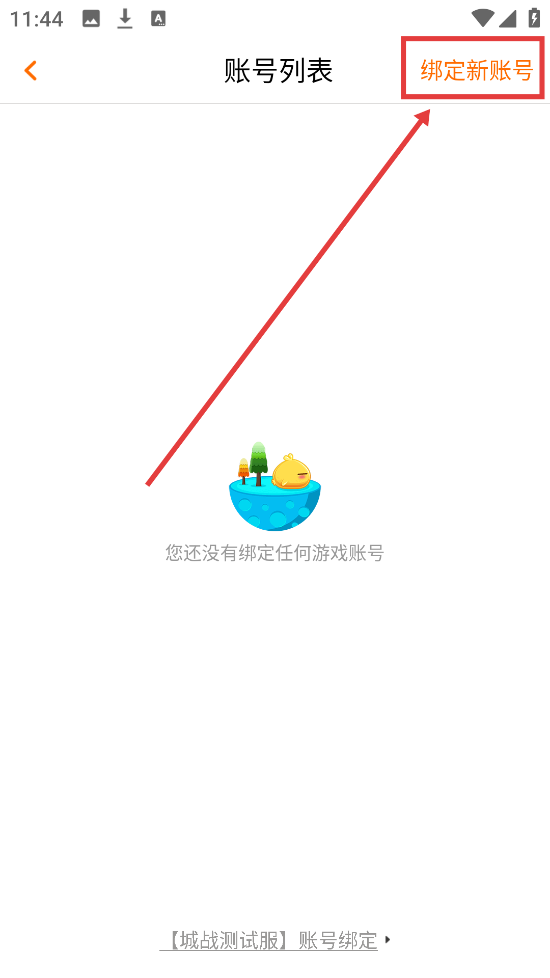 3、在账号列表界面点击【绑定新账号】,进入账号绑定界面,开始绑定游戏账号哦。