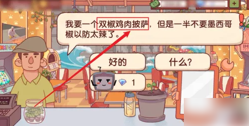 1、打开可口的披萨,首先在第四章剧情中与顾客对话接取【双椒鸡肉披萨】订单。