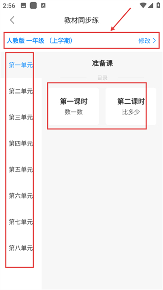 2、进入资料页后,选择对应教材版本和单元,就能看到该单元下的课时练习内容啦。