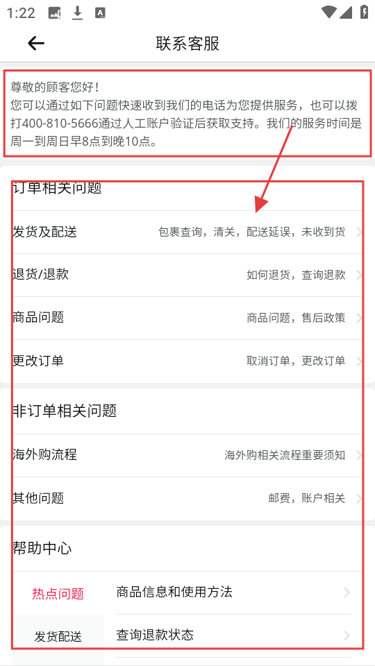 3、进入联系客服页面,能看到客服服务时间,还有订单相关、非订单相关等各类问题分类,选对应问题咨询哦。