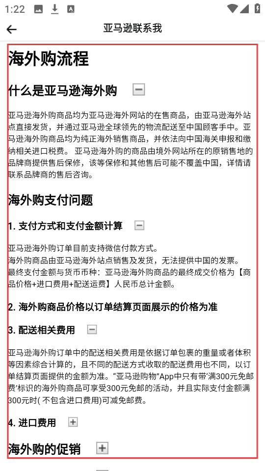 4、比如点击【海外购流程】相关选项,能查看亚马逊海外购的定义、支付、促销等详细流程说明呢。
