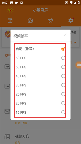 2、进入设置页后,点【视频帧率】选项,能展开帧率选择菜单,后续可挑选合适的帧率哦。