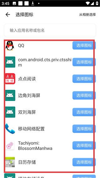 4、点击【选择图标】后会进入图标选择页,可从列表里选对应应用的图标,自定义分身的显示样式咯。