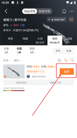 3、在道具详情页,确认好租赁价格后点【租赁】按钮,就能进入租赁流程,获取该道具的使用权啦。