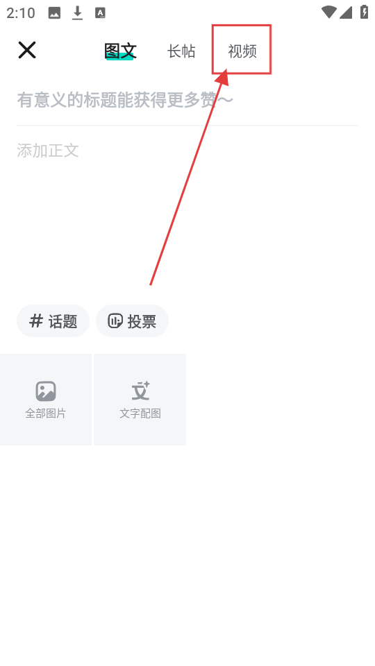 2、进入内容发布选择页面,点击【视频】选项,就能进入视频发布编辑页面,准备发布视频内容咯。