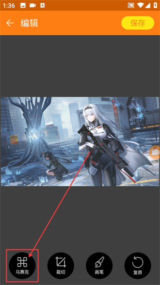 3、在图片编辑页,点【马赛克】工具就能给图片指定区域添加马赛克,保护隐私内容啦。