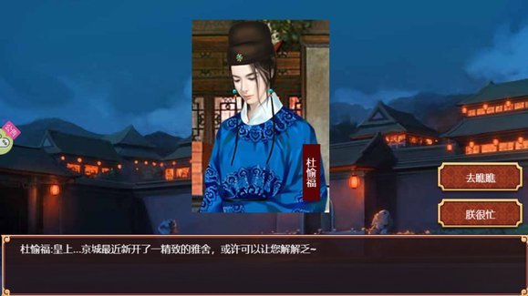 3、触发地点在京城,时间是第3n年的2月的晚上。晚上点击京城,会触发与侍卫的对话,可以选择去松竹馆。