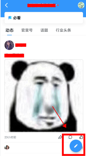 1、在【手机钉钉】-【发现】-【工作圈】-点击右下角蓝色的编辑图标,可以编辑需要发布的文字;
