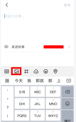 2、在界面下方有图片按钮,您可以点击上传图片和短视频哦。选择发送对象后点击【发布】即可。