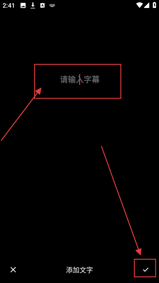 4、在字幕输入页面,输入要添加的字幕,然后点击对勾,这样就成功给视频添加字幕啦,快去看看效果吧。