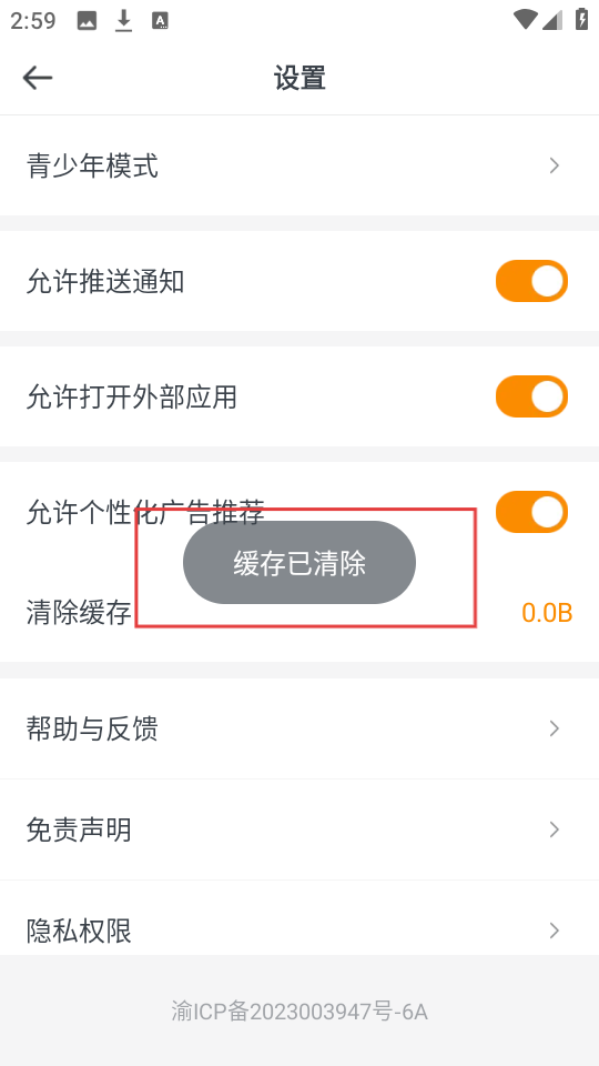 3、在设置页面,找到【清除缓存】选项,点击它就能清理软件缓存,释放存储空间哦。