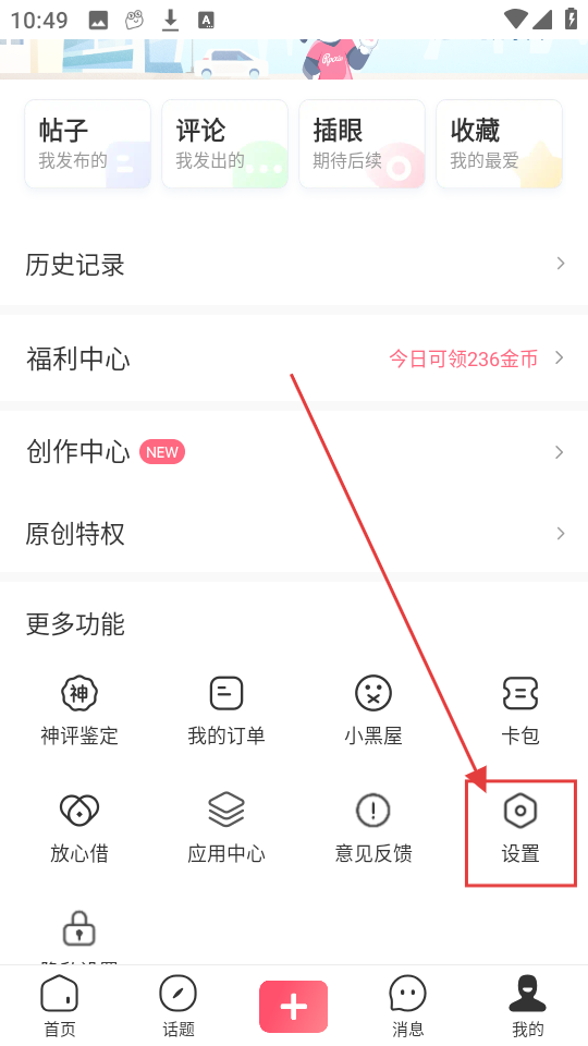 1、打开APP,进入“我的”页面,找到【设置】选项并点击,进入设置页面啦。