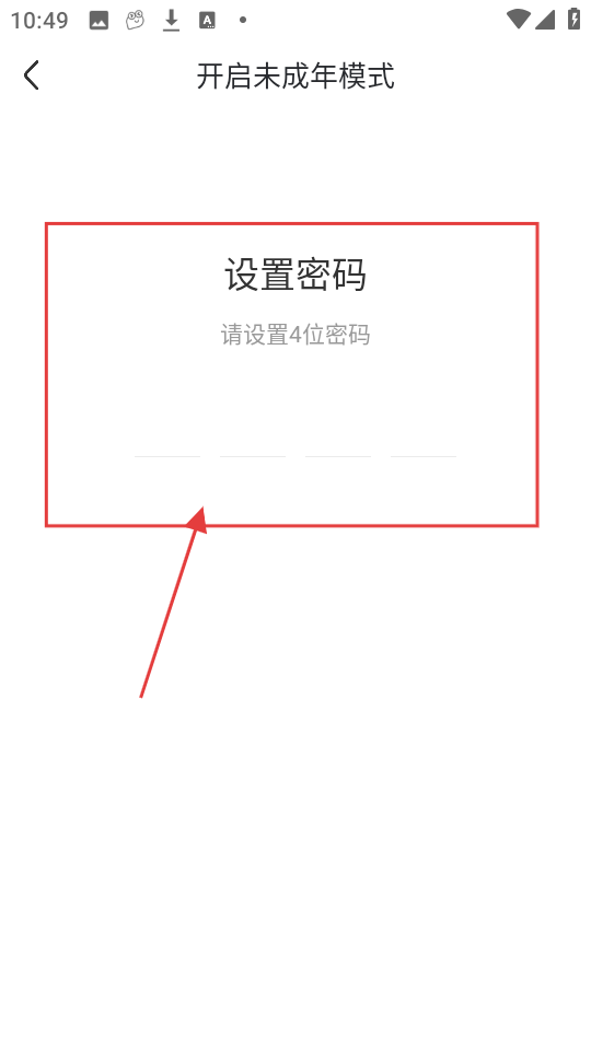 4、进入密码设置页面,设置4位密码,即可成功开启未成年模式,保护未成年人使用啦。
