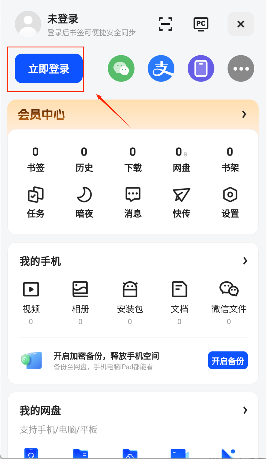 2、网盘备份功能很实用,在主界面找到“手机相册备份”或类似选项。点击“立即备份”,软件会自动将你手机里的照片视频上传到云端。