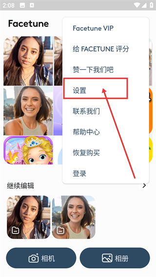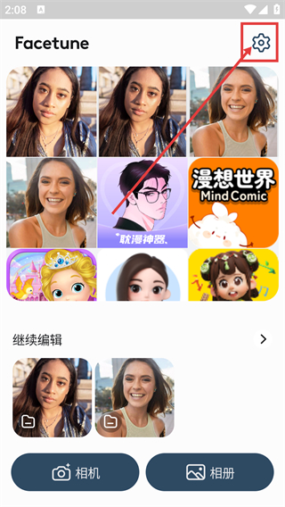 1、在【Facetune】主页面点右上角的齿轮图标,能打开功能菜单,后续可进入设置界面调整参数啦。