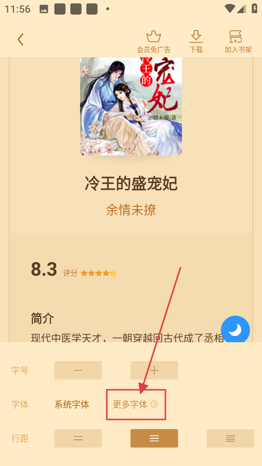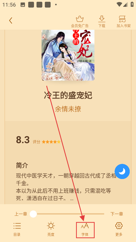 2、进入阅读页面后,点击【字体】,可打开字体设置选项,调整阅读字体啦。