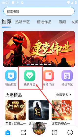1、在APP的首页,点击【免费专区】选项,可进入免费书籍列表页面,挑选感兴趣的听书内容啦。
