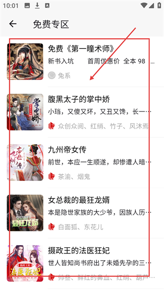 2、进入免费专区后,选择目标书籍条目,点击即可进入该书的详情页面,查看书籍介绍等信息哦。
