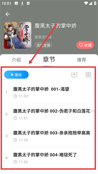 4、在章节列表中,点击想要收听的章节,即可开始播放对应内容,还能按需切换其他章节哦。
