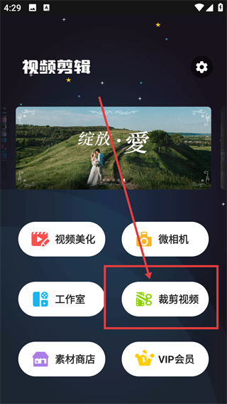 1、在视频剪辑主界面点击【裁剪视频】选项,就能进入裁剪页面,开始处理目标视频啦。