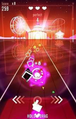 1、音乐类的手游总是能够给予玩家最为炫丽的视觉体验,华丽的霓虹特效。