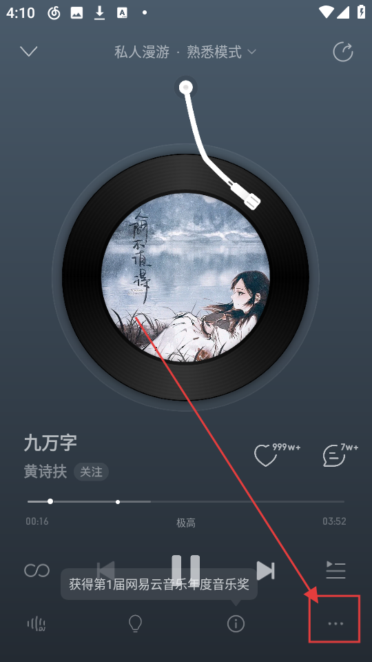 在歌曲播放界面的右下方大家可以看到一个三点图标,点击打开。