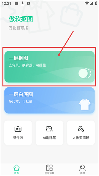 1、在本站下载安装傲软抠图软件,点击首页的人像抠图;