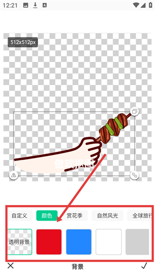 2、上传图片后点击下方【背景】选项,打开背景设置界面,可更换抠图后的背景样式啦。