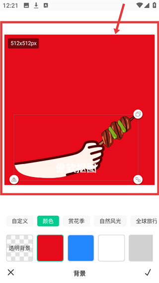 4、选中红色背景后,界面会实时预览效果,确认满意后就能应用该背景,让抠图更美观哦。