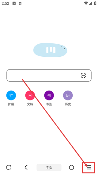 1、打开在本站下载的M浏览器,第一步,打开软件首页,点击轻站按钮。