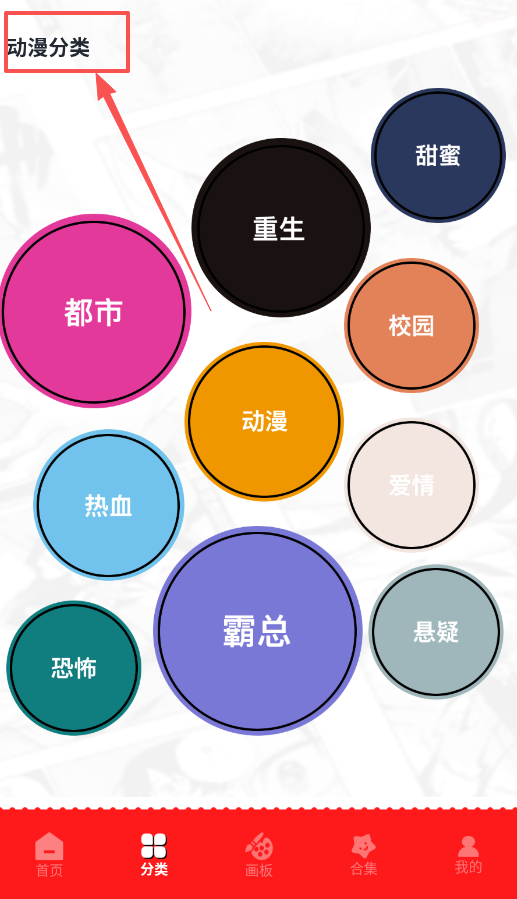 2、在分类界面能看到各种作品推荐,向下滑动会出现动漫、都市等分类入口,点击后还有更详细的恐怖、爱情等子分类。
