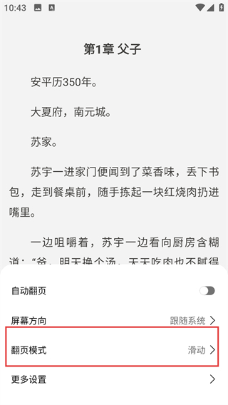 3、在设置菜单里点击【翻页模式】选项,就能进入翻页模式的选择界面,切换喜欢的翻页方式啦。