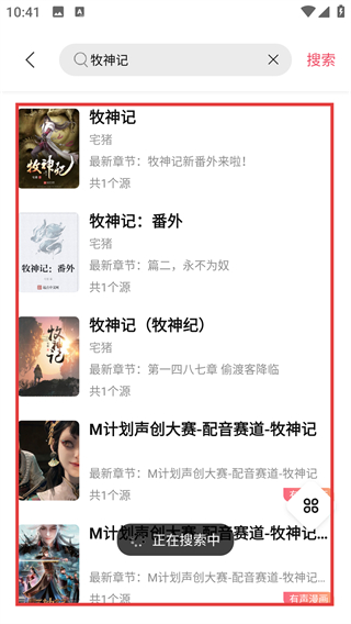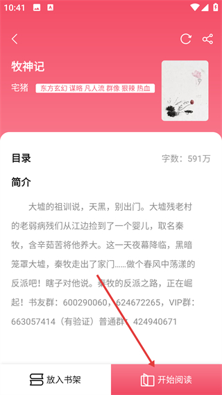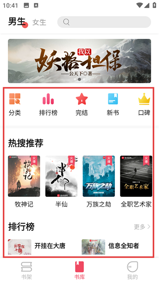 1、在书库页找到热搜推荐里的目标书籍(比如【牧神记】),点击就能进入搜索结果页面啦。