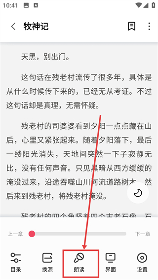 4、在阅读界面点击底部的【朗读】按钮,就能开启语音朗读功能,听着内容阅读更轻松哦。