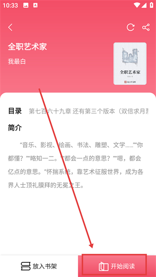 1、在搜索结果里选【全职艺术家】条目,点它就能进入书籍详情页,准备开启阅读相关操作啦。