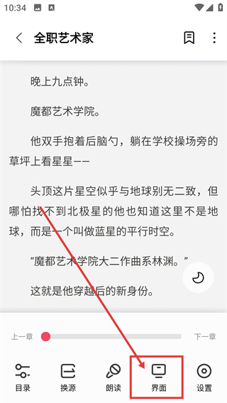 3、在阅读界面点底部的【界面】按钮,能打开界面设置面板,后续可调整阅读的显示参数啦。