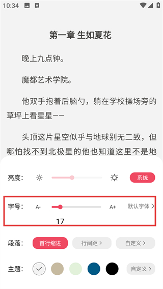 4、在界面设置里可调【字号】等参数,把字号调到舒适大小,能让阅读体验更轻松顺畅哦。