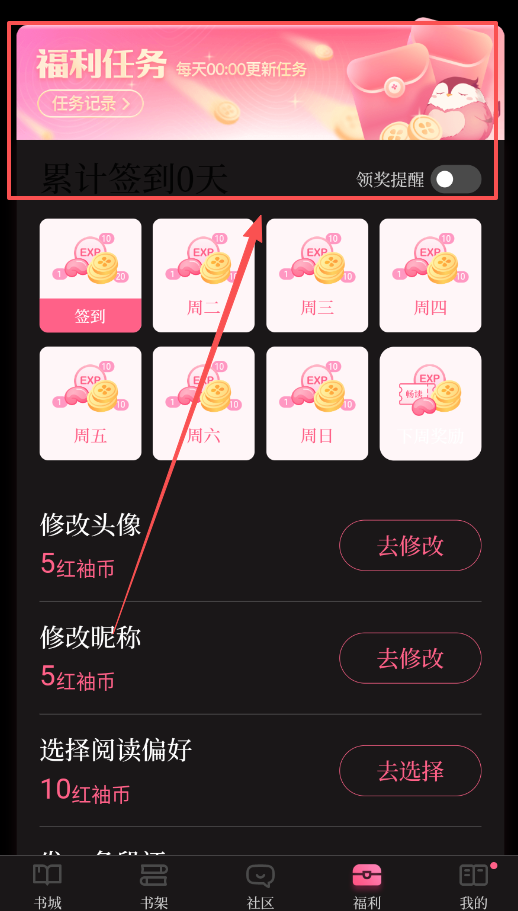 4、别忘了常去“福利”中心看看,通过每日领币、先读后付等活动能轻松获取红袖币和畅读券,有效降低你的阅读成本。