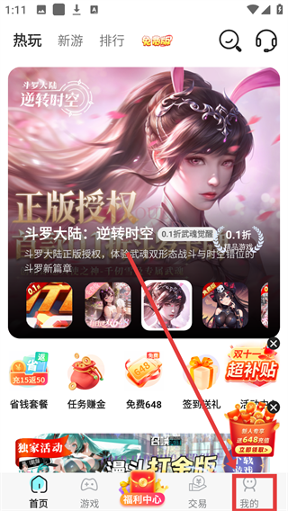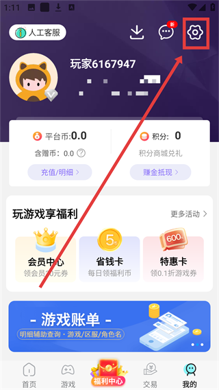 1、在游戏平台首页,点击底部【我的】,可进入个人中心页面,准备进行账号安全设置操作啦。