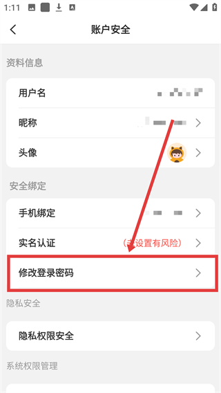 3、在账户安全页面,点击【修改登录密码】,可进入密码修改页面啦。