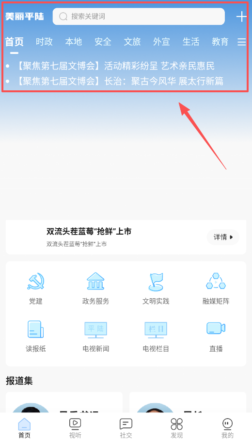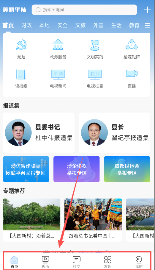 1、首次使用时,可以在首页浏览“时政、本地、安全、文旅”等频道,快速了解当地新闻动态,记得利用顶部搜索框直接查找关键词呢。