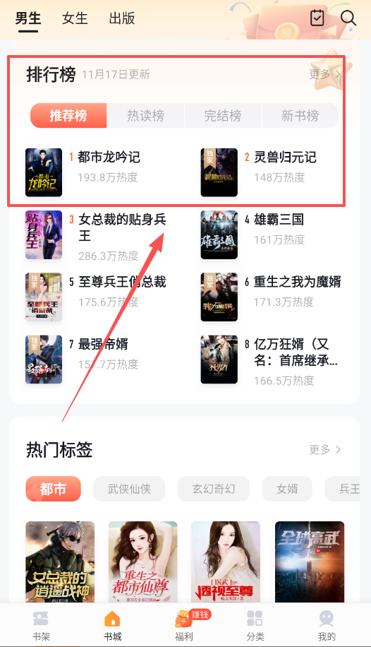 4、想找高质量作品,可以多逛“书城”里的各类榜单,例如月榜反映最新热门,季榜和热销榜则展示长期受好评的作品,选书更省心。