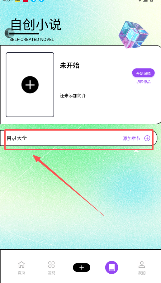 1、导航栏,最右的“我的”,是你创作的起点,请找到并点开“自创小说”,一个“开始编辑”的按钮正等着你。