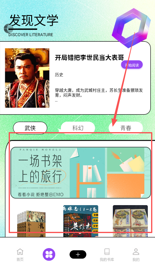 3、暂时没灵感的话,看导航栏中间那个“发现”,像逛书店一样浏览卡片,看到有趣的标题就点“开始阅读”,或者去看别的分类。