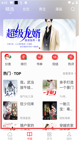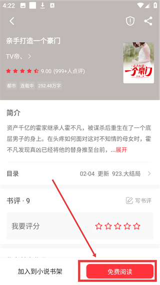 1、在书城页的【热门·TOP】区域选中心仪小说(如【亲手打造一个豪门】),点击就能进入小说详情页啦。