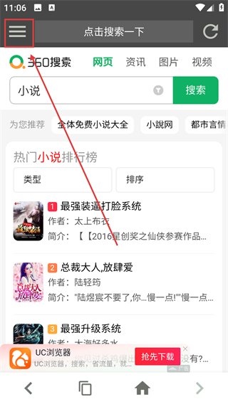 1、在搜索结果页点左上角菜单按钮,能展开功能列表,后续可找到收藏相关的操作选项啦。