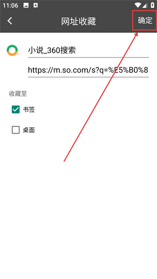 3、在网址收藏页确认名称和网址,选好收藏位置后,点右上角【确定】就能完成书签收藏啦。
