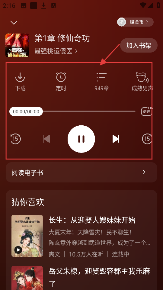 3、在听书页面,可调整倍速、选择音色等,还可设置定时,打造舒适听书体验啦。