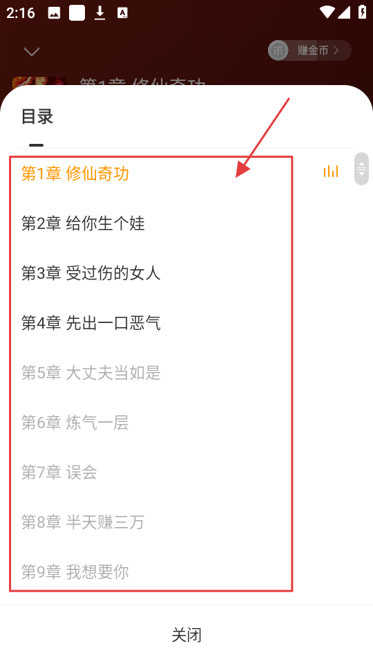 4、点击章节列表,可查看书籍目录,选择任意章节进行收听,轻松切换听书内容哦。